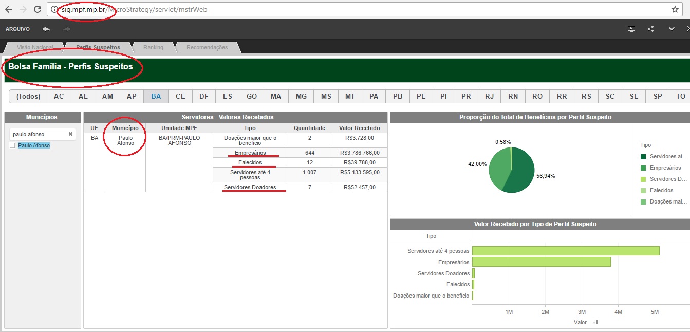 O projeto do MPF analisou todos os valores pagos pelo Bolsa Família no período de 2013 a maio de 2016 em Paulo Afonso. Nesse ciclo, o programa pagou aos 43.779 de beneficiários R$ 9 milhões. Desse total de beneficiários, 1672 foram considerados suspeitos.