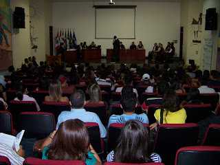 A 2ª parte da interpretação da obra constituiu-se em uma mesa redonda. Agora, sim, com a participação dos acadêmicos dos dois Cursos. As alunas do 3° período de Letras trilharam bonito com a literariedade e a poetisa Jovelina Ramalho (7° Direito) brindou a plateia com uma poesia de sua autoria, embalando a personagem da noite – Capitu.