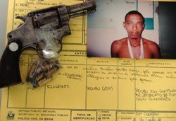 Após realizarem uma varredura na casa do meliante encontraram dentro do encosto do sofá um revólver calibri 32, municiado e oxidado, arma utilizada na ação criminosa. Com a prisão de Jó efetuada os agentes seguiram à caça de Guachinin que se encontrava, segundo informações, dentro da mata no Bairro dos Coentros. Ao avistar a chegada dos agentes ao local onde se escondia, Ghachinin efetuou disparos de arma de fogo sendo revidado pelos policiais. Guachinin ganhou mata adentro e conseguiu fugir.