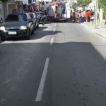 Impossível trafegar nessa rua, os carros de passeio estacionam em tudo que é lugar.
