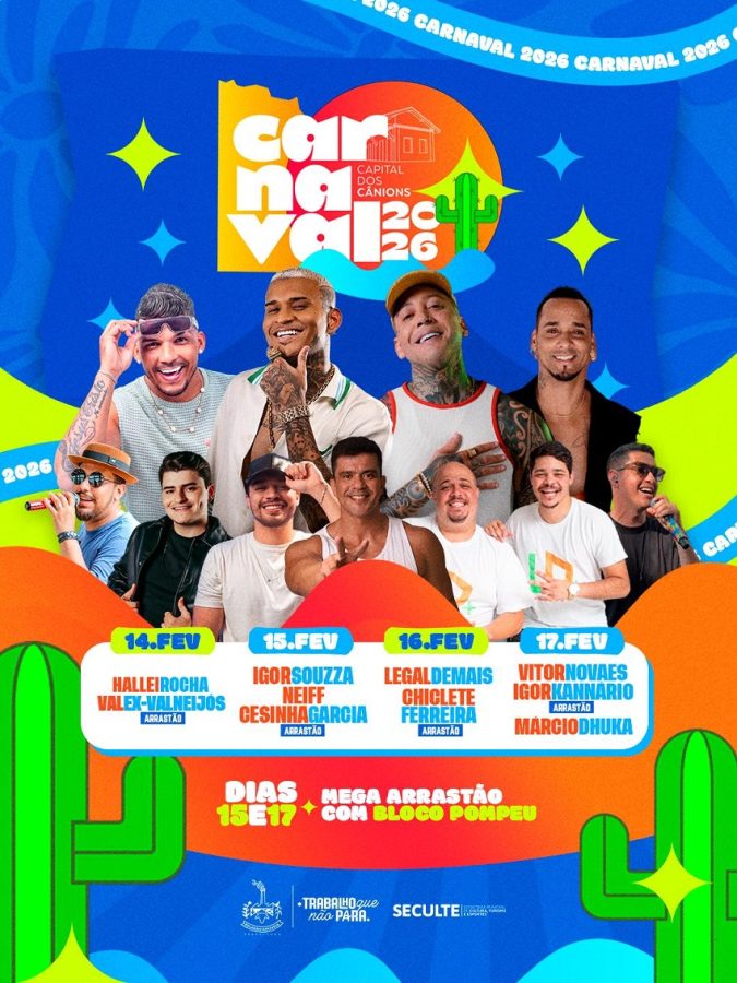 Este ano haverá o Mega Arrastão com o Bloco Pompeu, que sairá nos dias 15 (domingo) e 17 (terça-feira), prometendo arrastar multidões pelas principais ruas da cidade. A programação artística reúne uma mistura de ritmos, do axé ao pagodão, garantindo diversão para todos os públicos.