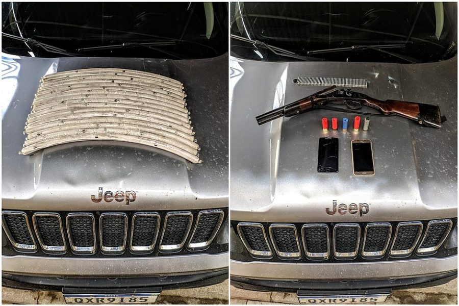 Ainda segundo a SSP-BA, dentro do automóvel da dupla, foram encontrados 50 espoletas para explosivo, 16 bananas de dinamite, um explosivo pronto para uso tipo anfo, cordel para detonação, uma espingarda calibre 12, um revólver calibre 38, cartucho, dois celulares.