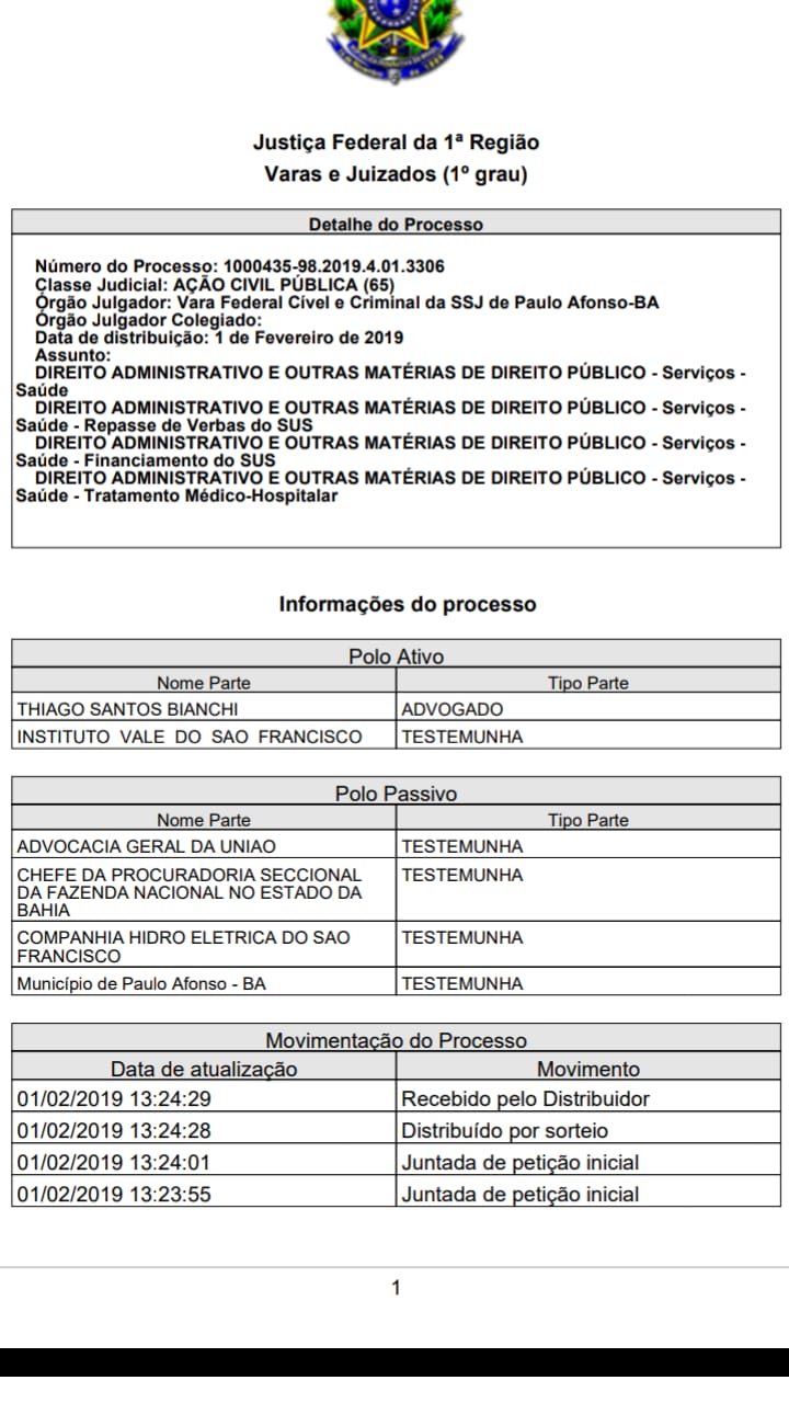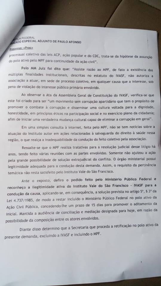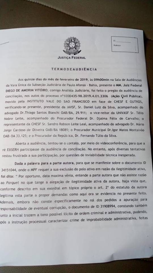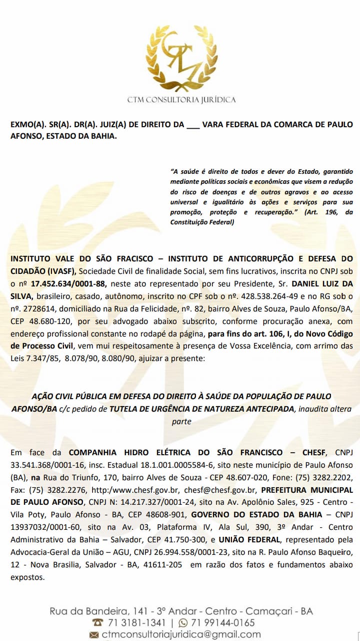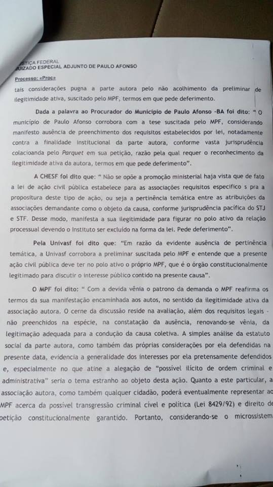 “Queria enfatizar a ação que tramita na Justiça Federal em Paulo Afonso, publicada no site PA4 de Ozildo Alves é de autoria de Daniel Luiz da Silva.