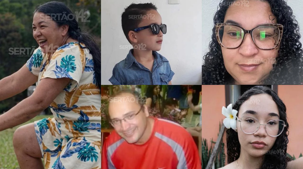 Morreram no local Cinthia Cavalcante, de 40 anos; o marido dela, José Ribamar Rodrigues dos Santos, de 50 anos; os três filhos do casal — João Murilo Cavalcante, de 3 anos, Isaac Valentim Cavalcante, de 10 anos, e Júlia Raquieli Cavalcante dos Santos, de 15 anos —; além de Solange Pereira Cavalcante, de 60 anos, mãe de Cinthia e avó das crianças.