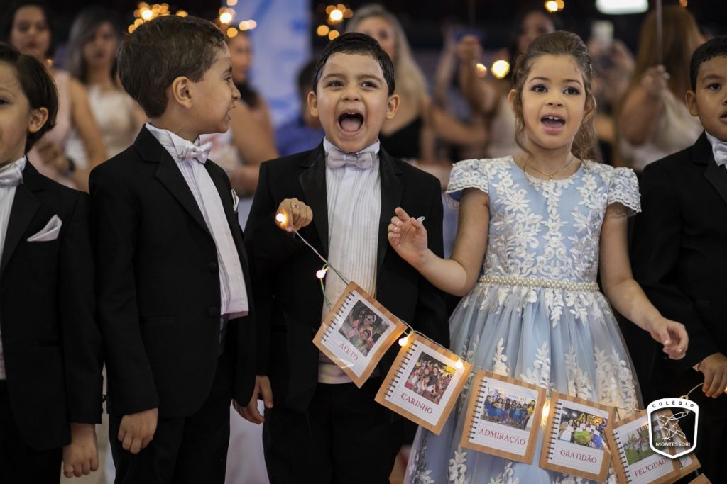 Para isso, alunos, familiares e seus convidados, professores, corpo diretivo e demais colaboradores do Colégio Montessori se reuniram na noite de 05 de dezembro no Clube Paulo Afonso para celebrar esta etapa da vida das crianças.