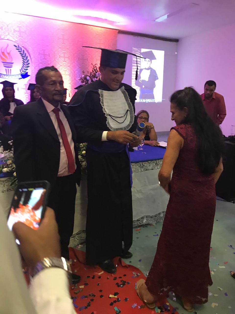 O formando Olivan Pereira Ventura, ao ser chamado para receber seu diploma, entrou no salão da cerimônia vestido de agricultor com uma enxada na mão, acompanhado pelos seus pais, que traziam em suas mãos a Beca que seria usada pelo concluinte. Acompanhados pela música de Zezé de Camargo e Luciano ‘ O dia em que sai de casa’ . Essa simbologia mostra a luta desses pais para oferecer educação ao filho. A cena arrancou lágrimas e aplausos dos presentes.