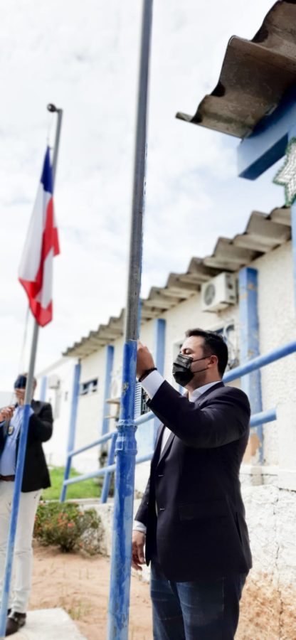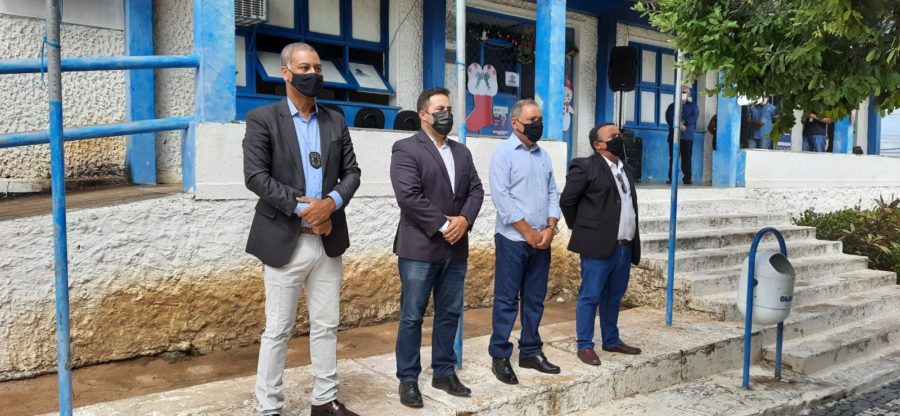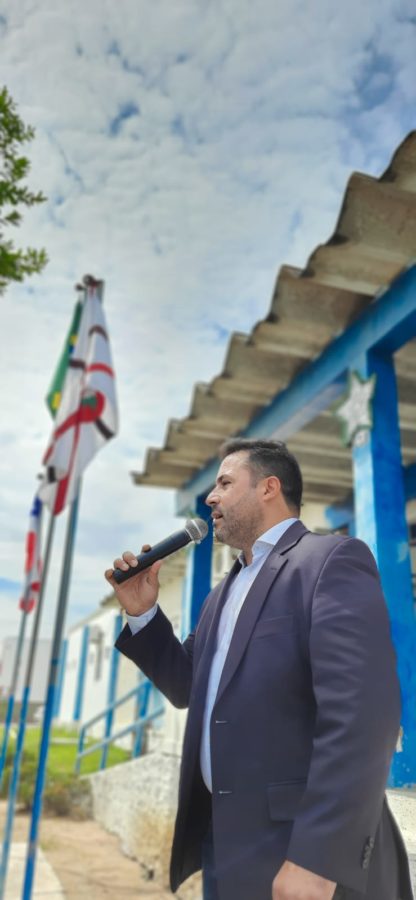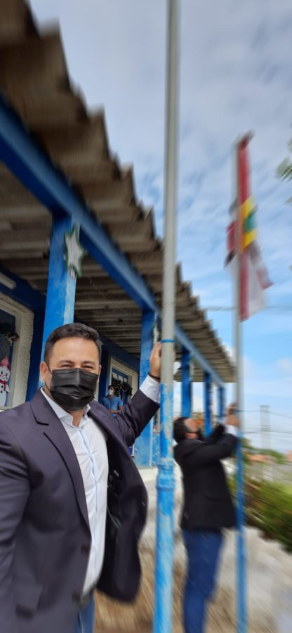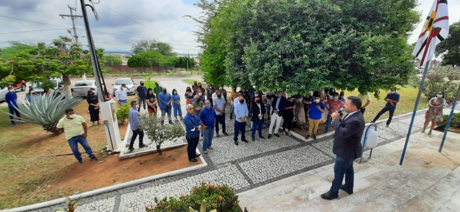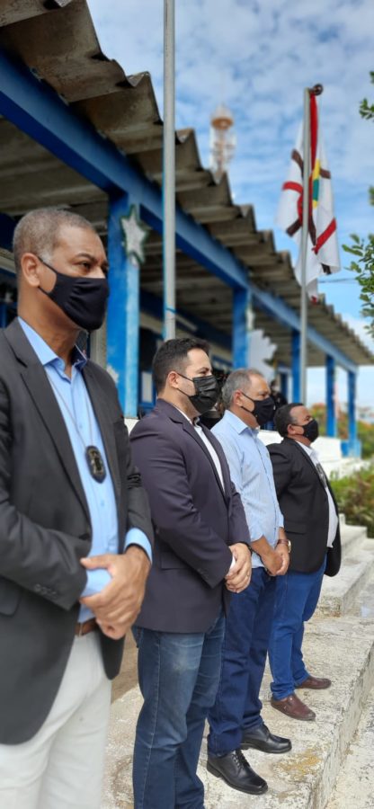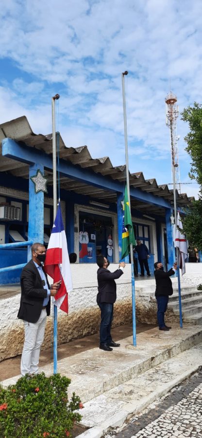 Nesta quinta-feira (6), em frente à prefeitura, Davi recebeu autoridades para o hasteamento das bandeiras, municipal, da Bahia e do Brasil, dando início às comemorações.