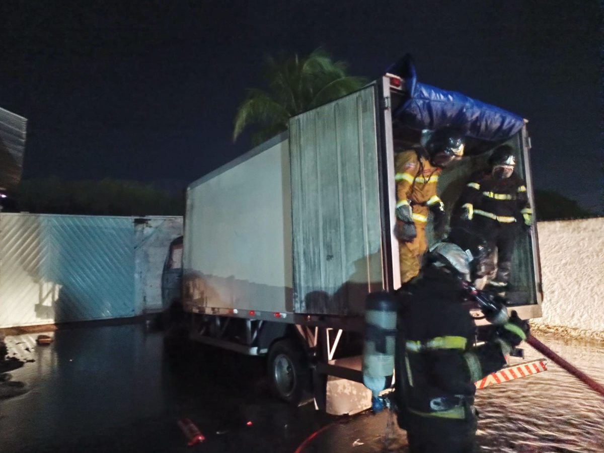 O incêndio consumiu completamente a cabine do veículo, além de atingir parte do compartimento de carga e materiais transportados. Estruturas próximas também sofreram danos em decorrência da ação do fogo e do calor.
