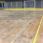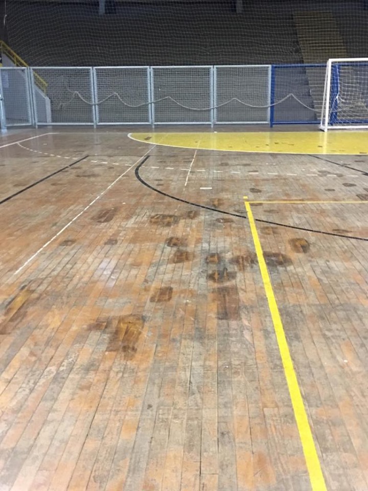 Piso de madeira é muito perigoso se não estiver em boas condições. Lembro do caso no Brasil onde uma fileta de pau grande entrou na perna de um jogador.