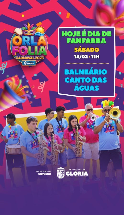 Glória, Bahia – O Balneário Canto das Águas já está preparado para receber o público no Circuito da Alegria. A programação tem início oficial às 11h, com a abertura marcada pela apresentação da Fanfarra, que promete dar o tom festivo ao evento com música e tradição típicas do Carnaval.