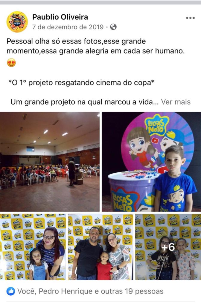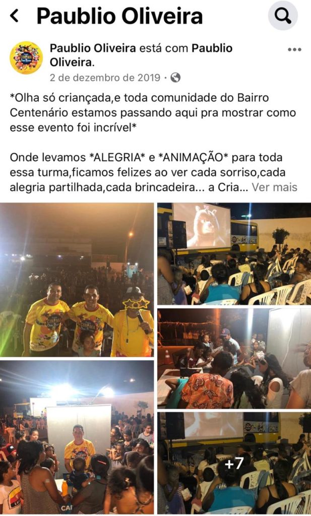 Em novembro do ano passado, Paublio Oliveira foi o responsável pelo resgate do cinema no COPA – Clube Operário de Paulo Afonso com filmes semanais em duas sessões, para criança e adulto, também gratuito. Além do retorno das competições de Bicicross de Paulo Afonso, em 2019. A volta de um Campeonato de Bicicross em Paulo Afonso aconteceu 11 anos depois da última competição.