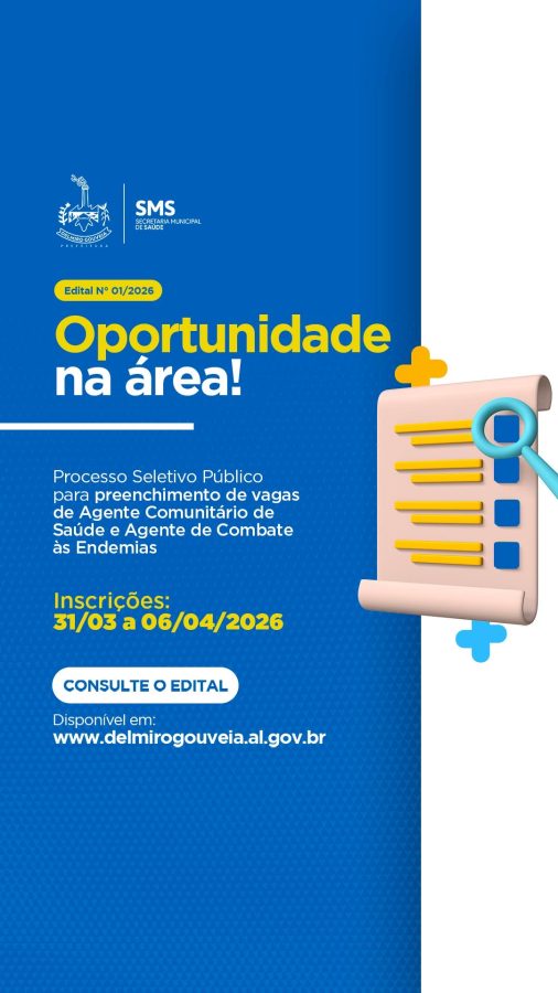 A Prefeitura de Delmiro Gouveia, por meio da Secretaria Municipal de Saúde (SMS), anunciou a abertura oficial do Processo Seletivo Público para o reforço das equipes que atuam diretamente no cuidado preventivo e no combate a doenças em toda a cidade. O Edital nº 01/2026 visa preencher vagas e garantir a continuidade dos serviços de saúde com qualidade em todo o município.