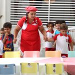 No final da refeição, os alunos receberam um kit contendo prato, copo e talheres como forma de incentivo a consumirem alimentos saudáveis nos horários certos.