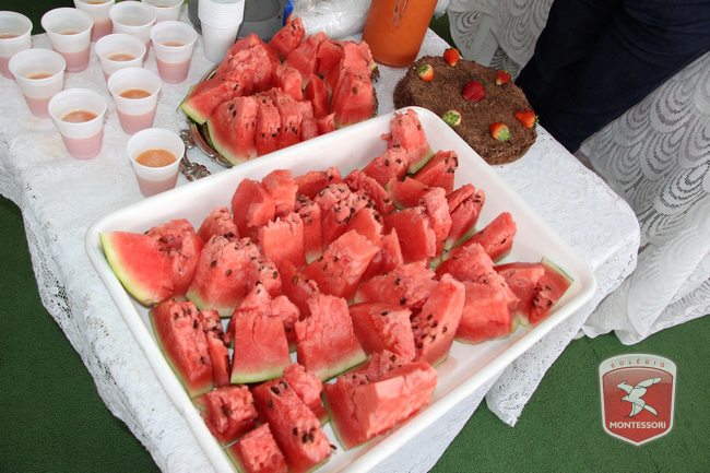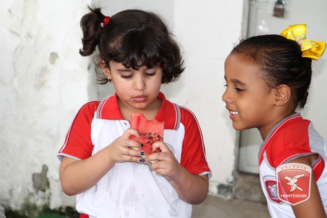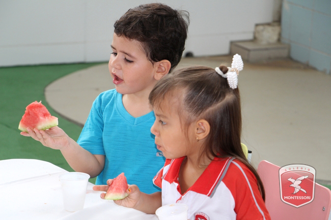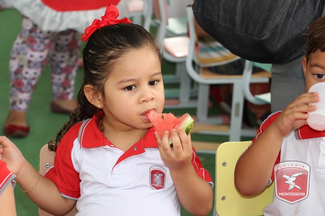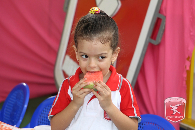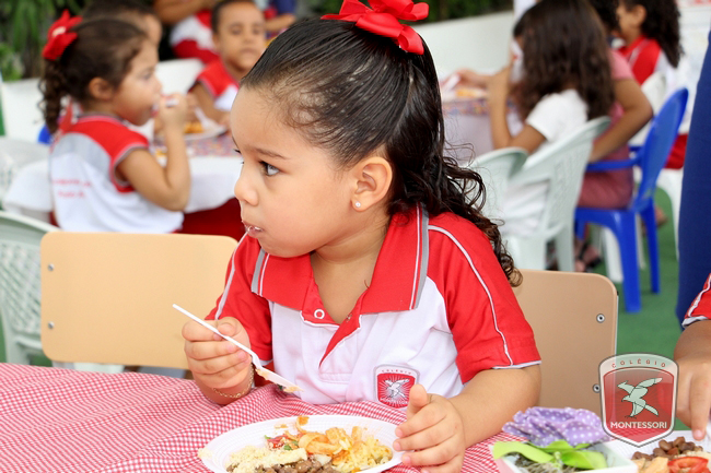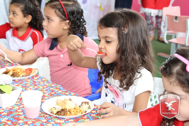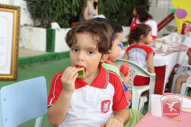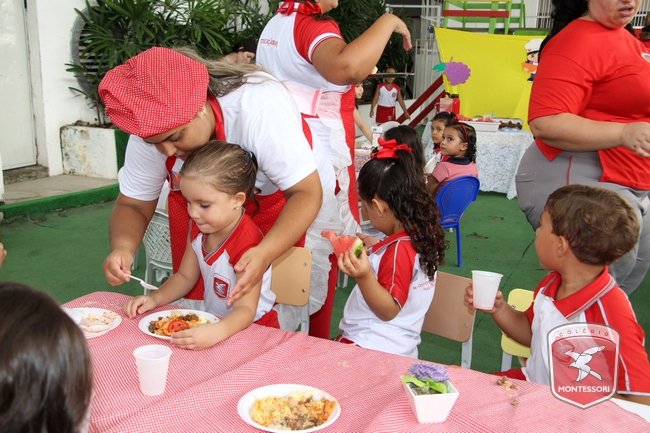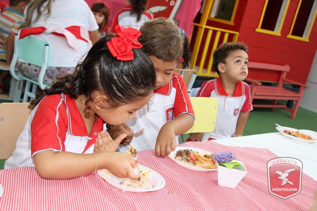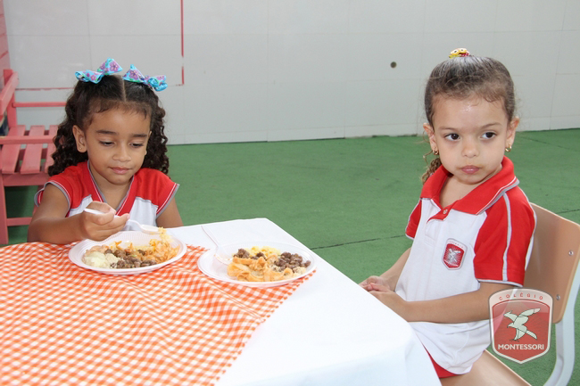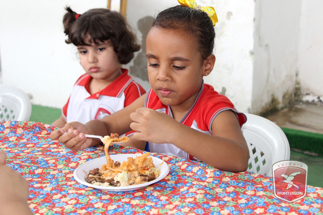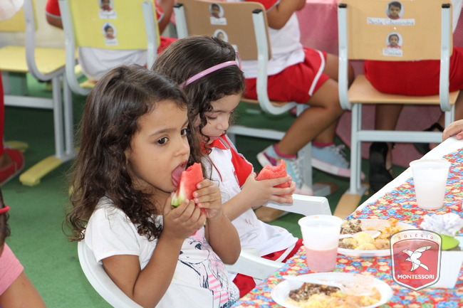 Aconteceu no início da tarde desta sexta-feira (11/11) no Parquinho Infantil do Colégio Montessori, o Projeto “Almocinho Saudável”. Esta atividade acontece há 13 anos e surgiu a partir da observação diária dos alunos ao fazerem suas refeições. “Percebemos a necessidade de maior autonomia para comerem com suas próprias mãos, sendo assim, com o intuito de incentivar essa autonomia e zelando por uma alimentação saudável, desenvolvi esse projeto”, explica Tia Cris.