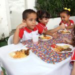 A refeição foi feita pelas Tias Cris e Andressa, com o apoio das famílias que ajudaram nos ingredientes. No cardápio feijão verde, arroz, farofa, macarronada, salada, purê de batata, estrogonofe e bife acebolado, acompanhado de suco e frutas como sobremesa. Além de fazerem uma refeição saudável, os alunos tiveram a oportunidade de confraternizar e dividir uma das refeições mais importantes do dia com seus coleguinhas.