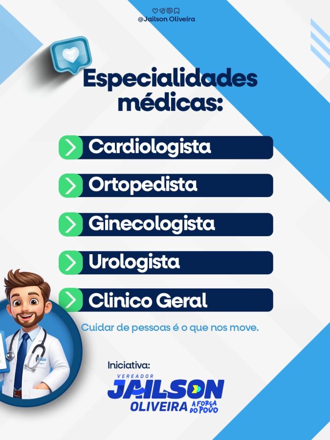 • Médicos: Cardiologista, Ortopedista, Ginecologista, Urologista e Clínico Geral.