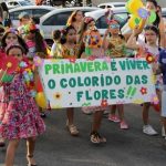 A primavera é a estação do ano favorita para muitas pessoas, e é certamente fácil de entender porque isso acontece. É na primavera que as flores começam a desabrochar, trazendo um colorido especial às paisagens. Em Paulo Afonso as caraibeiras é que dão um tom todo particular à primavera. O amarelo de suas flores se estendem pelas ruas, praças e avenidas, tornado os dias mais bonitos. Para comemorar a chegada da estação mais florida do ano, a coordenação da educação infantil do Colégio Montessori preparou uma semana repleta de atividades para a criançada. Teve oficina de pintura em tela, decoração de vasinhos, festa das flores, cantoria e contação de histórias, sempre trabalhando temas transversais, como preservação da natureza, parte que formas as plantas, germinação, etc. A Semana da Primavera foi finalizada com o já tradicional Desfile da Primavera pelas principais ruas do centro da cidade acompanhado pela Banda da Montessori.
