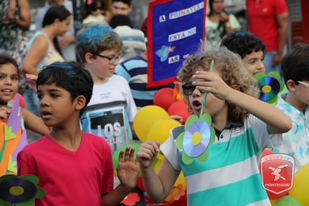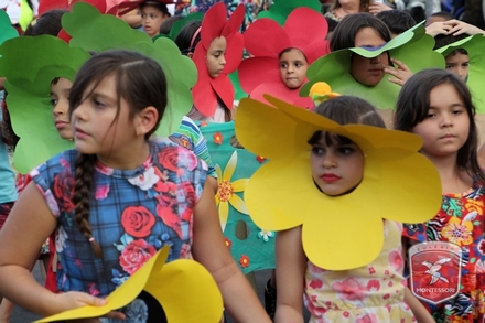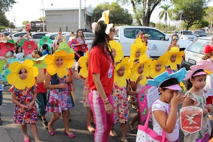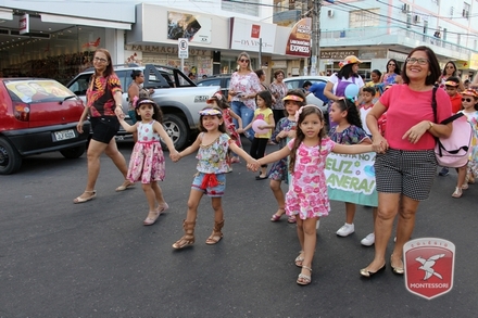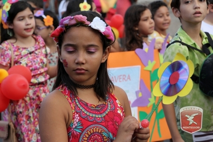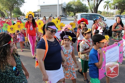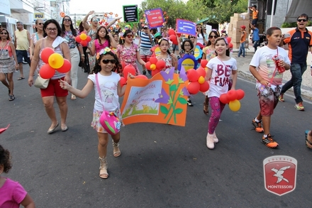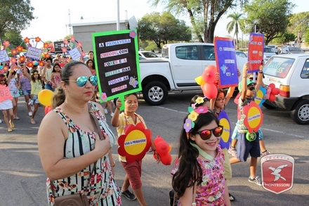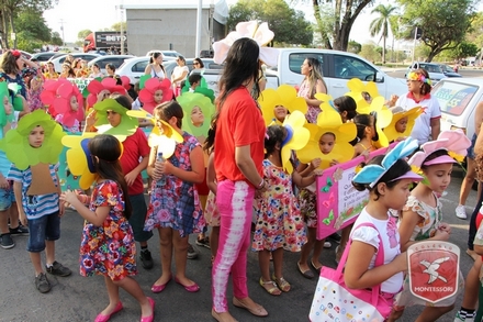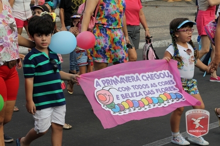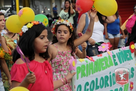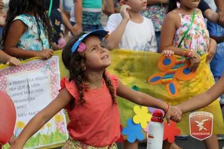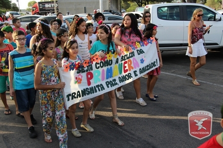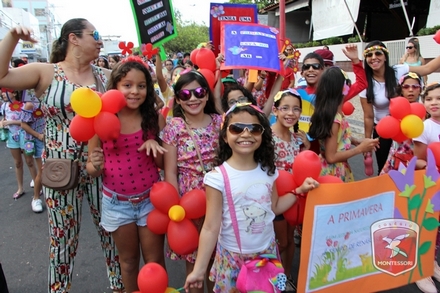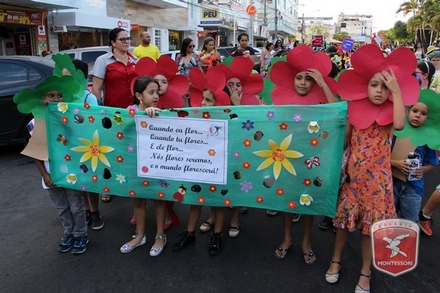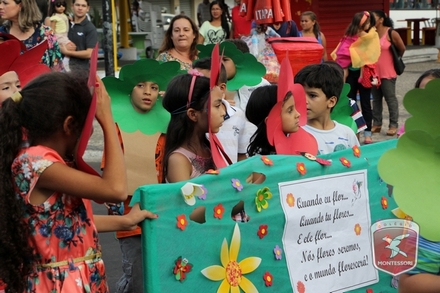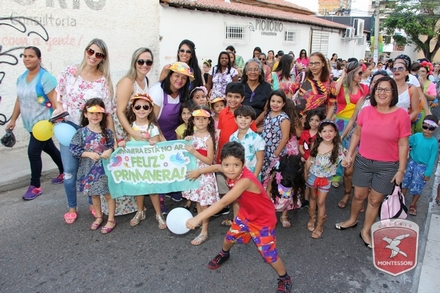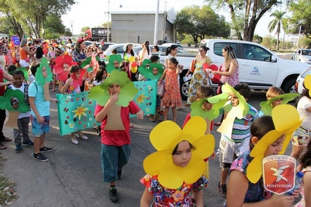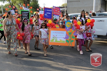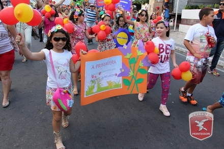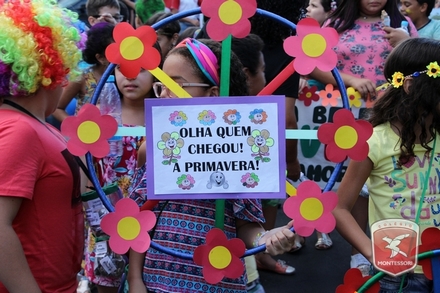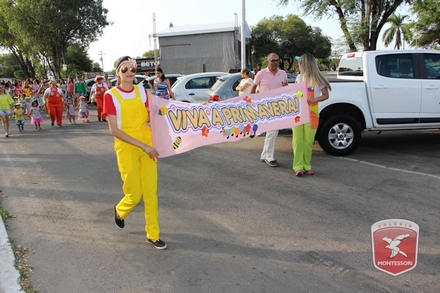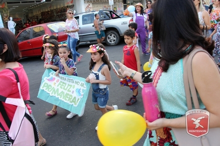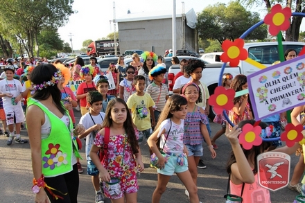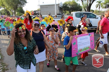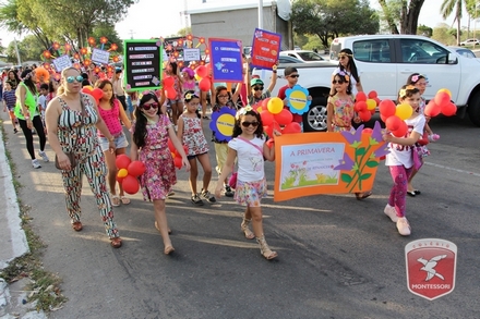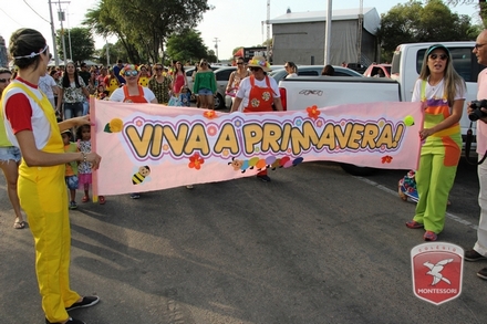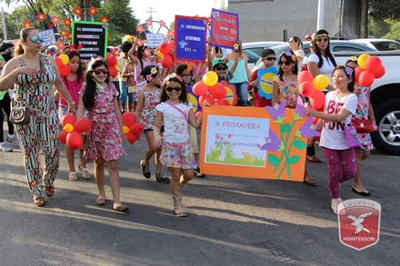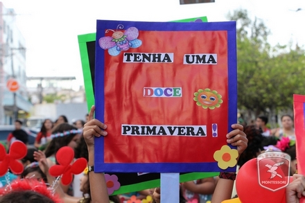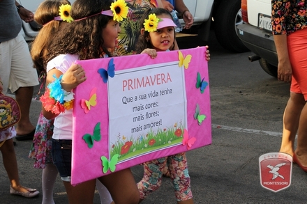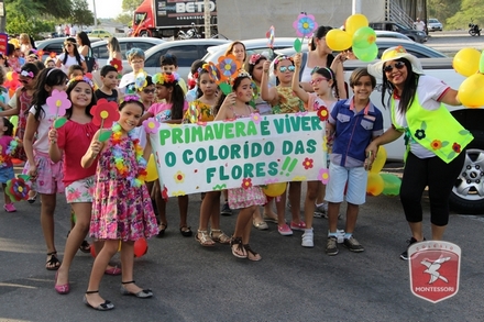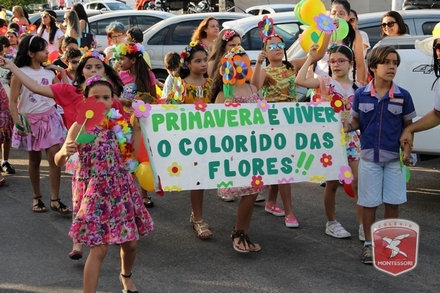A primavera é a estação do ano favorita para muitas pessoas, e é certamente fácil de entender porque isso acontece. É na primavera que as flores começam a desabrochar, trazendo um colorido especial às paisagens. Em Paulo Afonso as caraibeiras é que dão um tom todo particular à primavera. O amarelo de suas flores se estendem pelas ruas, praças e avenidas, tornado os dias mais bonitos. Para comemorar a chegada da estação mais florida do ano, a coordenação da educação infantil do Colégio Montessori preparou uma semana repleta de atividades para a criançada. Teve oficina de pintura em tela, decoração de vasinhos, festa das flores, cantoria e contação de histórias, sempre trabalhando temas transversais, como preservação da natureza, parte que formas as plantas, germinação, etc. A Semana da Primavera foi finalizada com o já tradicional Desfile da Primavera pelas principais ruas do centro da cidade acompanhado pela Banda da Montessori.