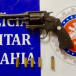 Ainda de acordo com a PM, “foi realizada a abordagem e na cintura de Adriano Alves dos Santos, 31 anos, “Dinho”, foi encontrado 01 revólver calibre 38, marca Taurus, oxidado, de numeração 134690, com 04 munições deflagradas e 01 pinada.”