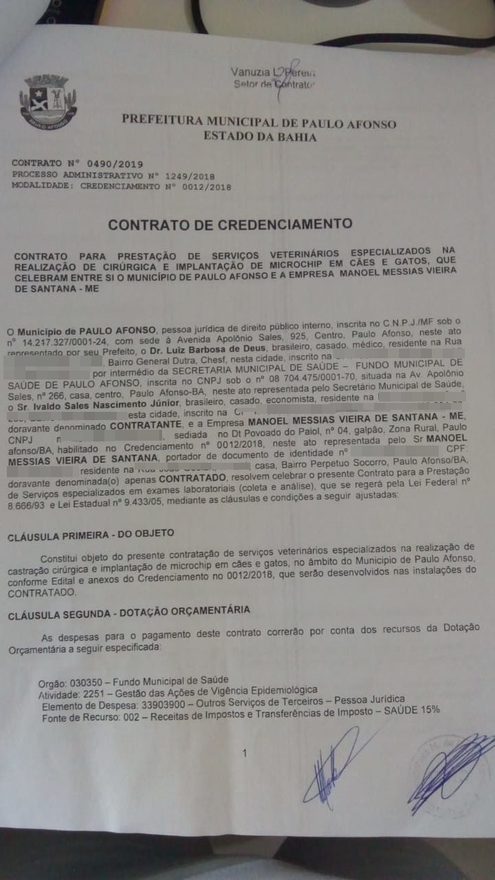 Veja matéria publicada no site oficial no Ministério Público da Bahia em dezembro de 2017:  “Prefeitura de Paulo Afonso firma TAC com MP para implementar Política de Defesa Animal”
