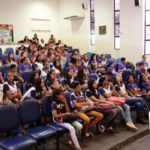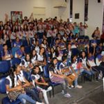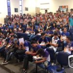 E nesse embalo da solidariedade, os alunos do 3º ano do Ensino Médio se dividiram em equipes e prepararam um Aulão Solidário para os alunos do 9° ano da Escola Municipal Guiomar Pereira, na tarde de 03/04, no auditório da unidade municipal escolar.