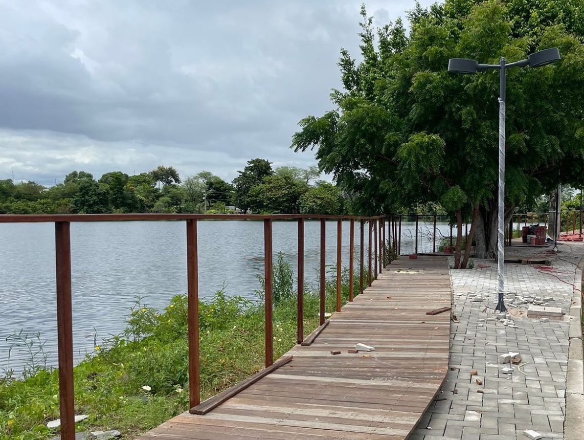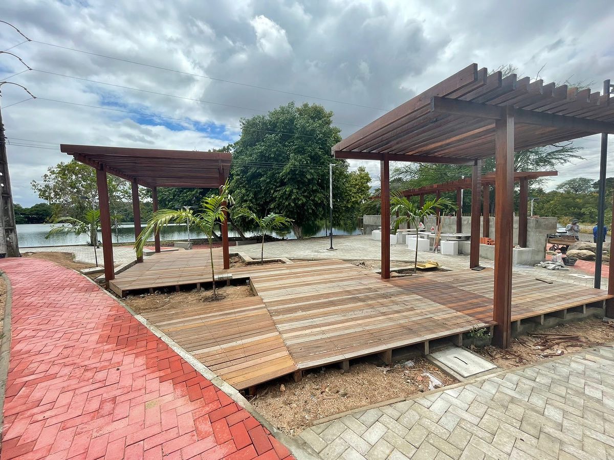 Obra de urbanização do Lago Capuxu segue em andamento. O local, que é um ponto turístico de Paulo Afonso, está ficando ainda mais bonito, com um pergolado em madeira que contorna toda a borda e uma pracinha para contemplação, já em fase de finalização.
