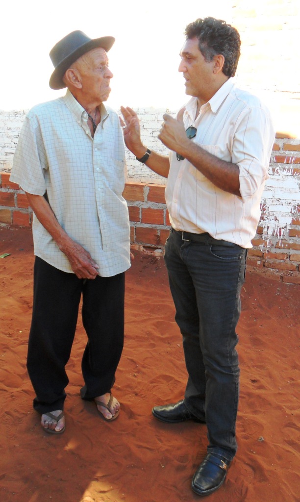 Seu Bento com a esposa e a filha entregando o facão a João de Sousa Lima