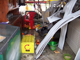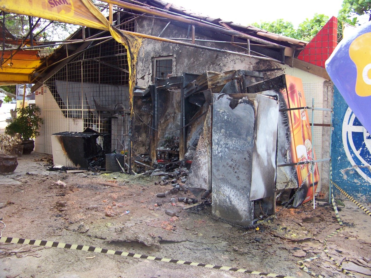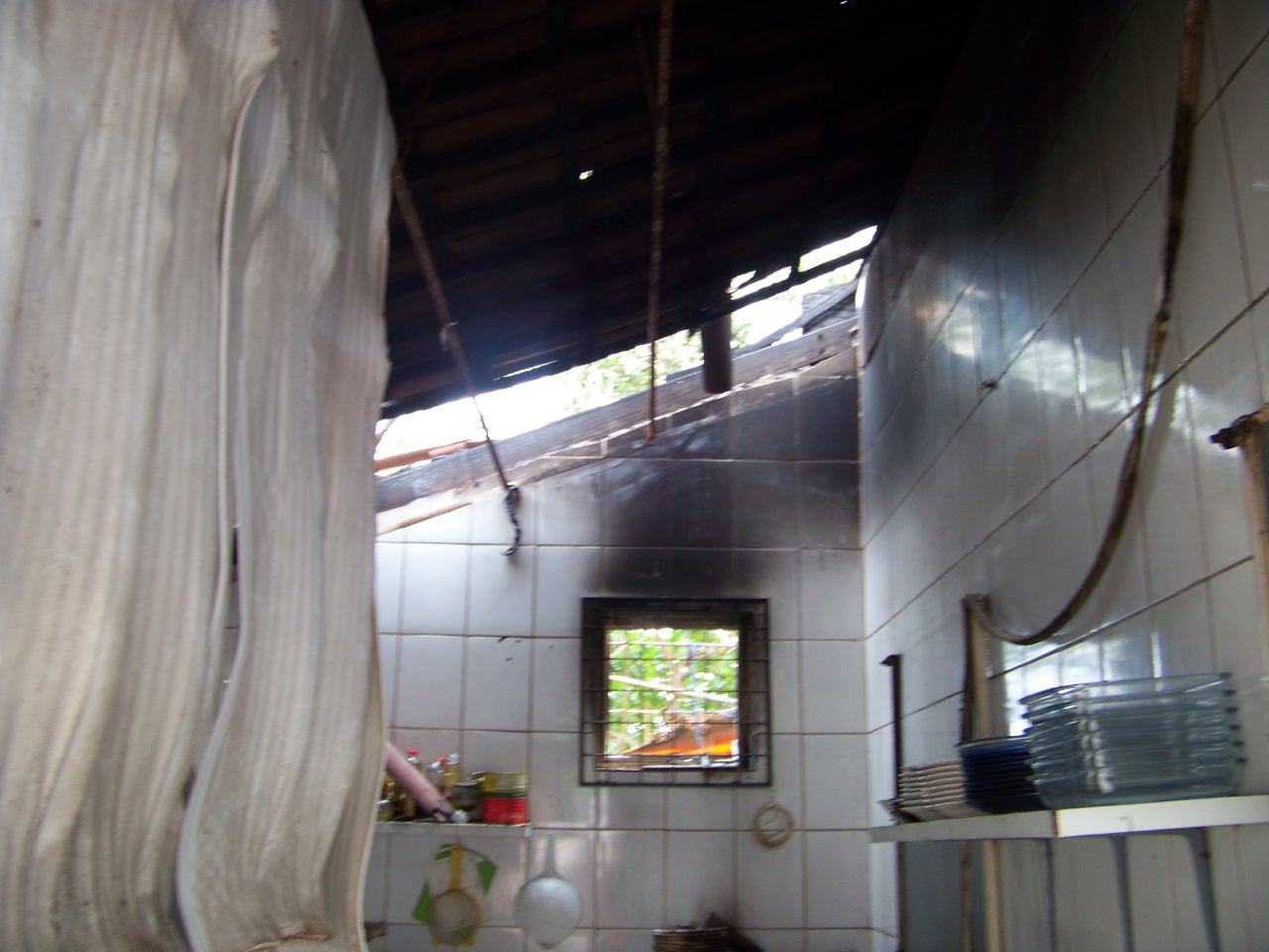 Foram destruídos pelo fogo: 07 frízeres; 01 choppeira; 60 jogos de mesas; o forro; vários objetos de pequeno porte e o telhado teve que ser isolado pelo Corpo de Bombeiros, pois ameaçava desabar.