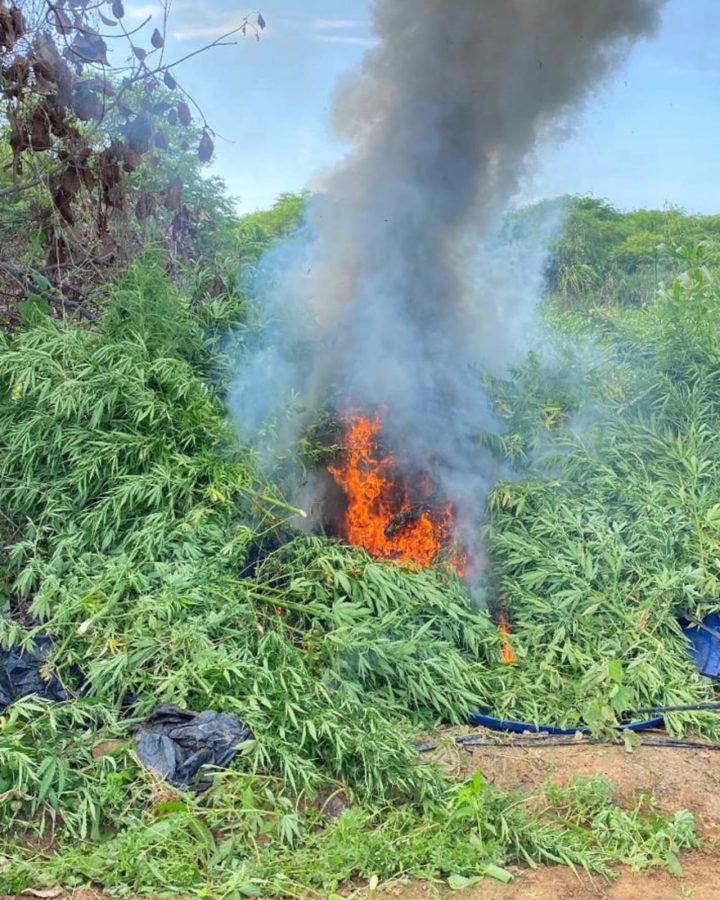“Ao chegarem no local indicado, os policiais confirmaram a veracidade da denúncia, localizando uma plantação com aproximadamente 50 mil pés de maconha. Em ação imediata, a roça foi incinerada no próprio terreno para evitar a propagação da droga”, informou a Polícia Militar.