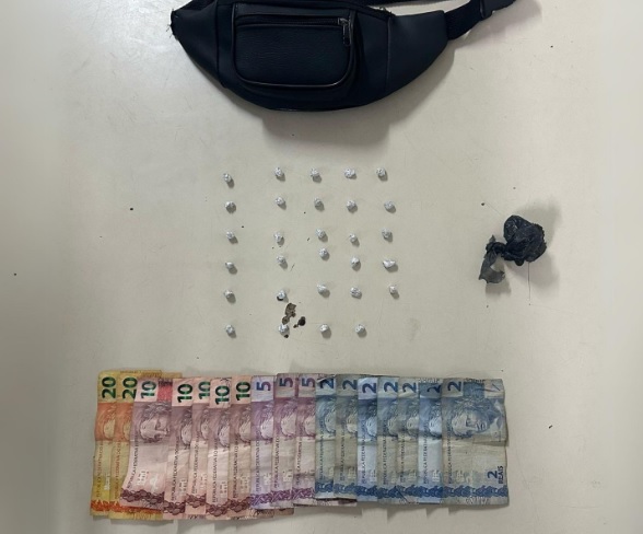 Durante a operação, um indivíduo já conhecido na área por envolvimento em atividades ilícitas foi flagrado tentando descartar um saquinho preto contendo várias pedras de substância análoga a crack. A abordagem resultou na apreensão de 29 pedras dessa substância, além de R$119,00 em diferentes cédulas, configurando evidências claras de atividade de comercialização de drogas. Um usuário também foi abordado, sendo encontrado com ele uma pochete preta contendo duas pedras de crack.