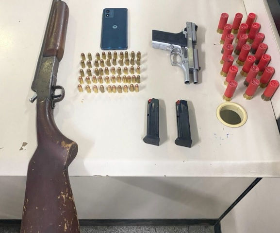 Durante rondas táticas, os policiais observaram um homem em atitude suspeita, o que levou à tentativa de abordagem. O suspeito fugiu para um estabelecimento comercial local, onde, após uma busca minuciosa, os policiais encontraram uma espingarda calibre 12 e 21 cartuchos intactos. O indivíduo admitiu ser o proprietário da arma encontrada.