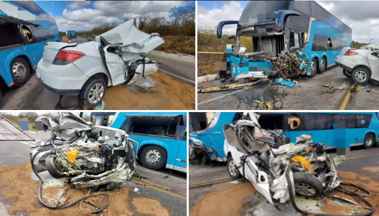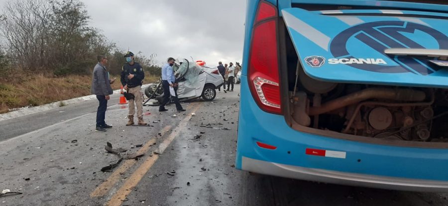 De acordo com a Polícia Rodoviária Federal que atendeu a ocorrência, o motorista do carro de passeio e do ônibus, morreram no local presos às ferragens. Equipes do Corpo de Bombeiros e do Serviço do Atendimento Móvel de Urgência – SAMU, também foram acionadas para o local da ocorrência.