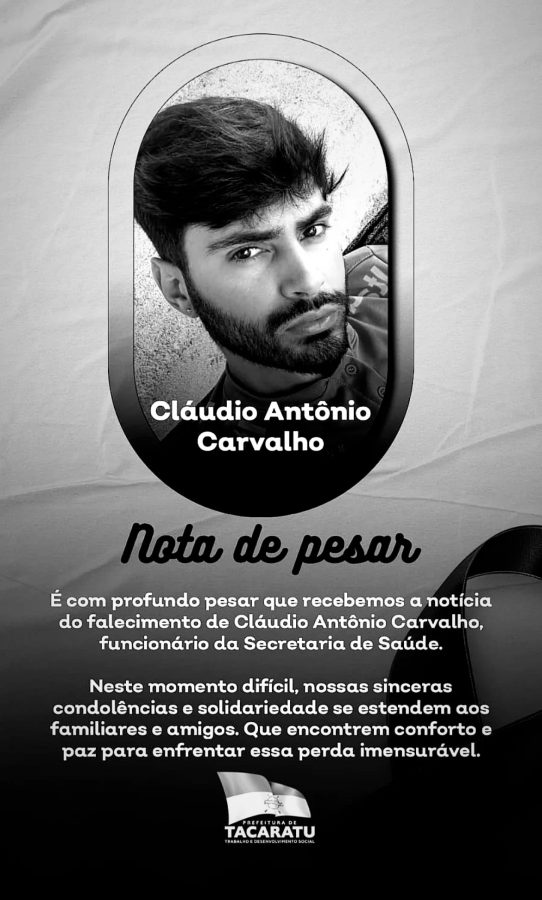 A Prefeitura de Tacaratu também divulgou uma nota de pesar, destacando que Cláudio era funcionário da Secretaria de Saúde do município. Em mensagem, a gestão municipal expressou solidariedade e condolências aos familiares e amigos, desejando força neste momento de profunda dor.