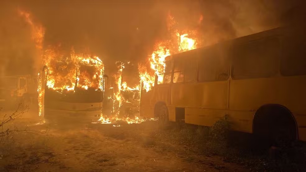 O incêndio começou em um dos coletivos e rapidamente se espalhou para os veículos estacionados ao lado. Imagens feitas por moradores mostram a intensidade das chamas. O Corpo de Bombeiros foi acionado e conseguiu controlar o fogo cerca de duas horas após o início das chamas.
