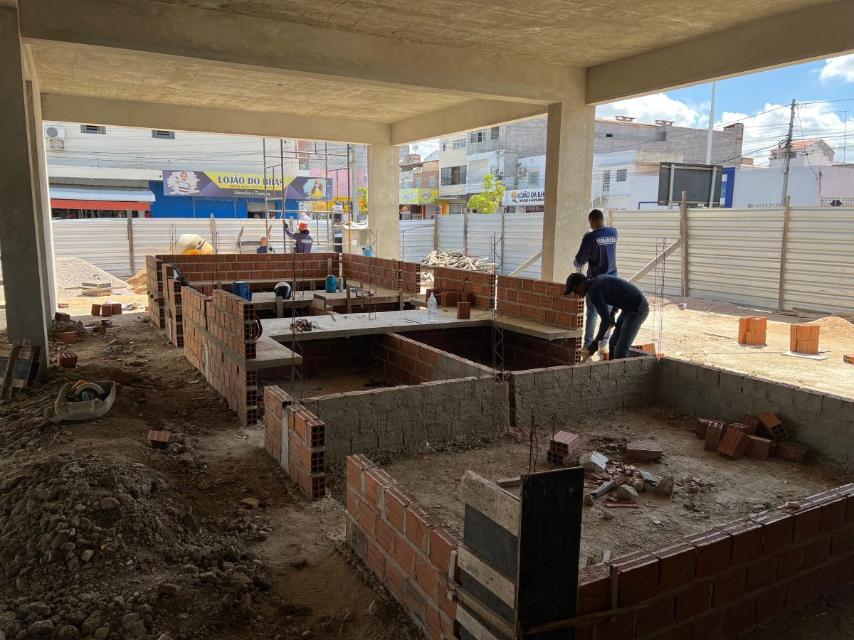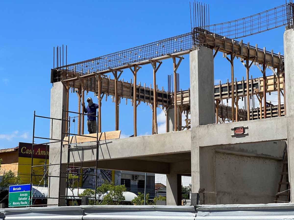 Atualmente, a equipe está concentrada no térreo, trabalhando nas divisórias das bancas, enquanto no primeiro andar, as vigas estão sendo concluídas para receber a laje. A extensão do pavimento superior contribuirá para aumentar a ala das lanchonetes e boxes de confecções, facilitando o fluxo de pessoas e oferecendo mais comodidade aos comerciantes.
