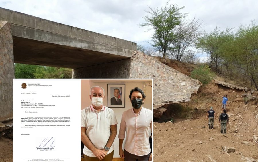Na oportunidade, o parlamentar entregou aos gestores o Ofício nº 166/2021 solicitando o recomeço imediato da obra da ponte do Rio do Sal, município de Paulo Afonso, que liga os povoados de Mão Direita, Malhada Grande, Lagoa de Pedra, Lagoa do Junco, Picos, Espinheiros, Xingozinho, Salobro, Tabuleirinho e Sítio do Tará onde encontra-se com sua estrutura comprometida com risco inclusive de possíveis acidentes e desastres.