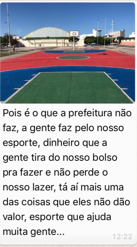 Da raiva se ver uma coisas dessas. Inúmeras vezes a prefeitura foi procurada para tentar um apoio para os atletas poderem viajar, e disputar competições, usando o nome da cidade, e foi negada. Várias vezes tentamos um espaço para poder no ginásio, e eram nos dadas as piores desculpas possíveis. E todas as vezes que tentamos algo para ajeitar a quadra do lindinalva, tbm não nos davam ouvidos. A não ser perto de tempos políticos, onde querem mostrar serviço, e enganar a todos. Aí a prefeitura agora vem com essa conversa, e acha que todos vão acreditar? Vergonha da prefeitura de Paulo Afonso