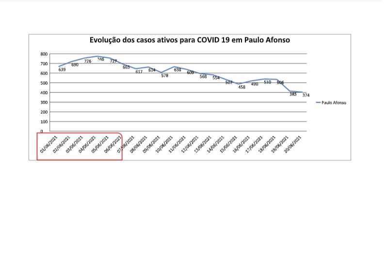 De acordo com a vigilância, as equipes de profissionais realizam o monitoramento no número de casos dia a dia com divulgação quinzenal do balanço geral. A equipe analisou que no dia 4 de junho, o município teve o maior pico com 746 casos positivados, entretanto, no decorrer do período quinzenal de 17 de junho o balanço fechou com 510 positivados, uma queda no primeiro momento de 236 casos.
