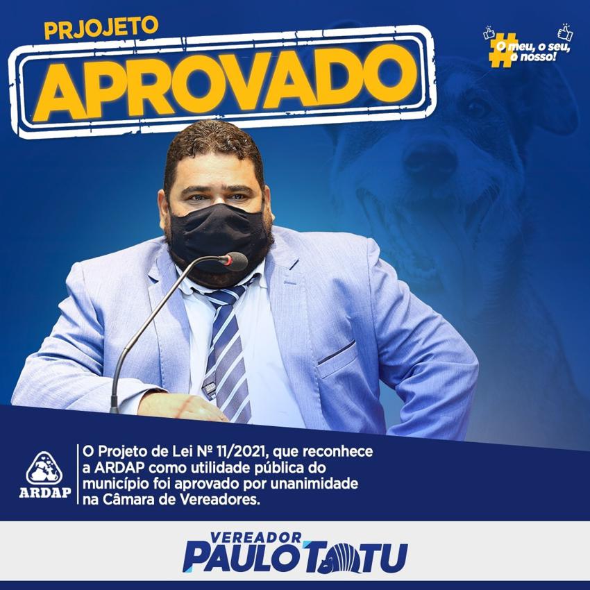 Hoje, 12 de abril de 2021, foi votado o Projeto de Lei 11/2021 de autoria do Vereador Paulo Tatu, que instituiu como utilidade pública no âmbito do município de Paulo Afonso/BA a ARDAP que é uma instituição que presta um serviço essencial ao município, é uma entidade que sofre com a falta de recursos e mesmo assim se esforçam para proteger todos os animais em perigo.
