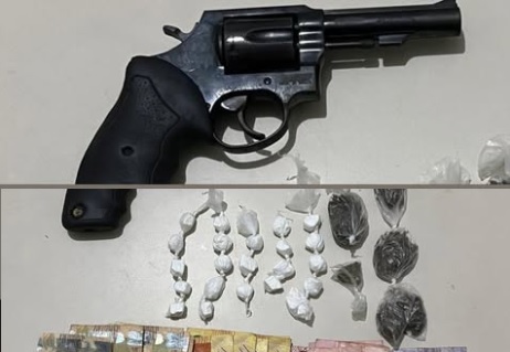 Ao chegar ao local, um indivíduo empreendeu fuga, deixando a porta do apartamento aberta. Dentro do imóvel, foi avistado um revólver em cima do sofá. Durante as buscas, também foram encontrados dinheiro e substâncias ilícitas prontas para o comércio.