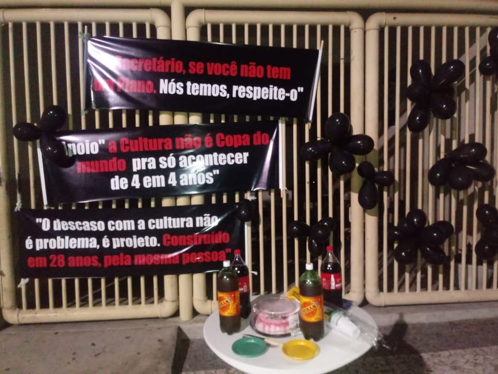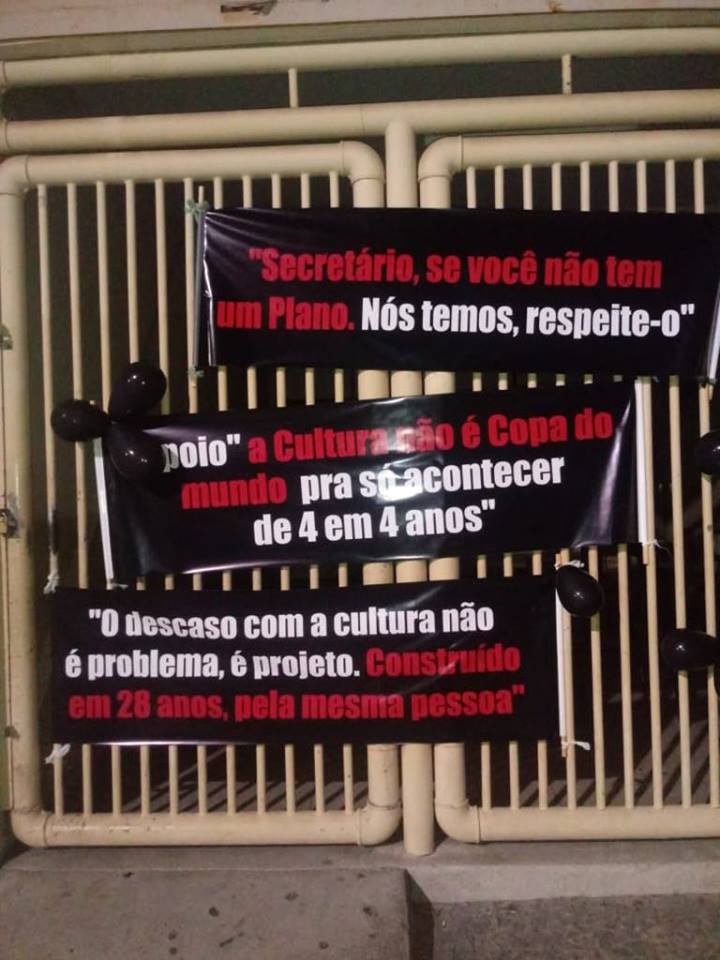 As maiores críticas foram dirigidas ao secretário de Cultura e Esportes do município, Jânio Soares. Na entrada do prédio com a obra inacabada, havia três enormes faixas alusivas ao responsável pelos eventos culturais da cidade: “Secretário, se você não tem um plano, nós temos, respeite-o”.