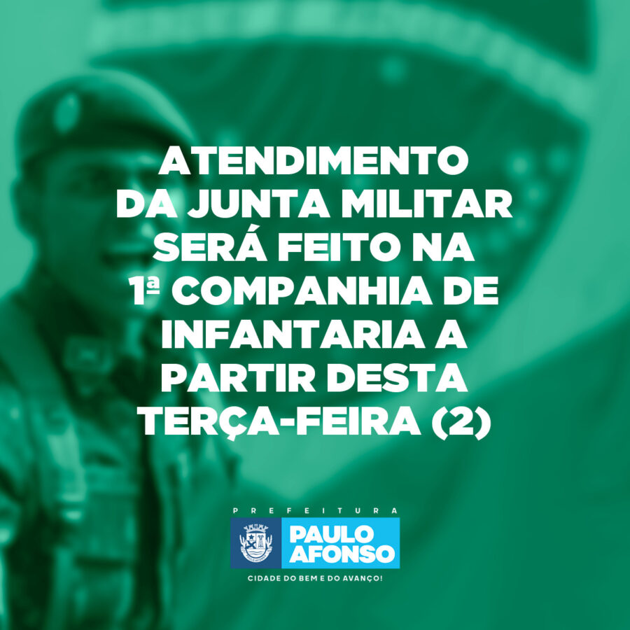 Atendimento da Junta Militar será feito na 1ª Companhia de Infantaria a partir desta terça-feira (2)