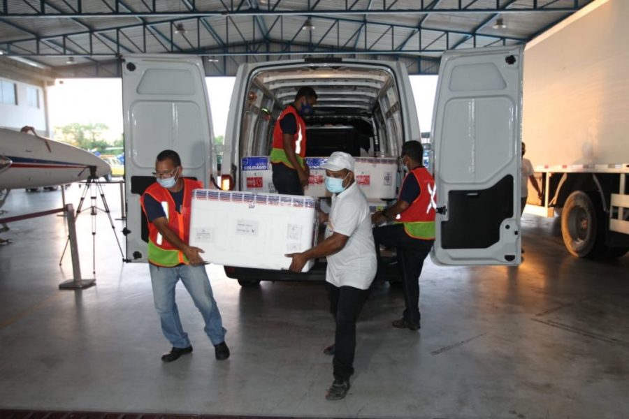 Uma nova remessa com 222.500 doses de vacinas contra a Covid-19 chegou à Bahia nesta quinta-feira (22). O avião que trouxe os imunizantes pousou no aeroporto de Salvador por volta das 17h. Do total, 180.500 foram produzidas pela Fiocruz/Astrazeneca/Oxford e 42.000 pelo Butantan/Sinovac. Com esta nova carga, a Bahia chega ao total de 3.893.450 doses de vacinas contra a Covid-19 recebidas.