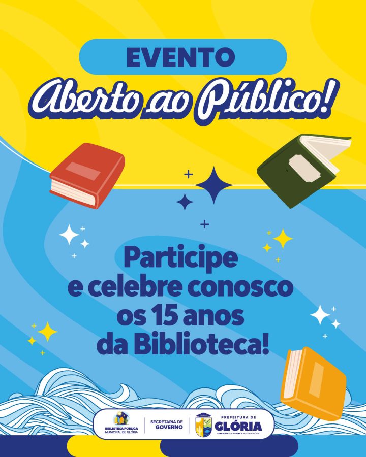 A Prefeitura Municipal de Glória, através da Secretaria de Governo, convida toda a comunidade para celebrar os 15 anos da Biblioteca Pública Municipal. Mais do que um espaço de leitura, ela carrega afeto, tradição e identidade, sendo um importante centro cultural e educacional para o município.