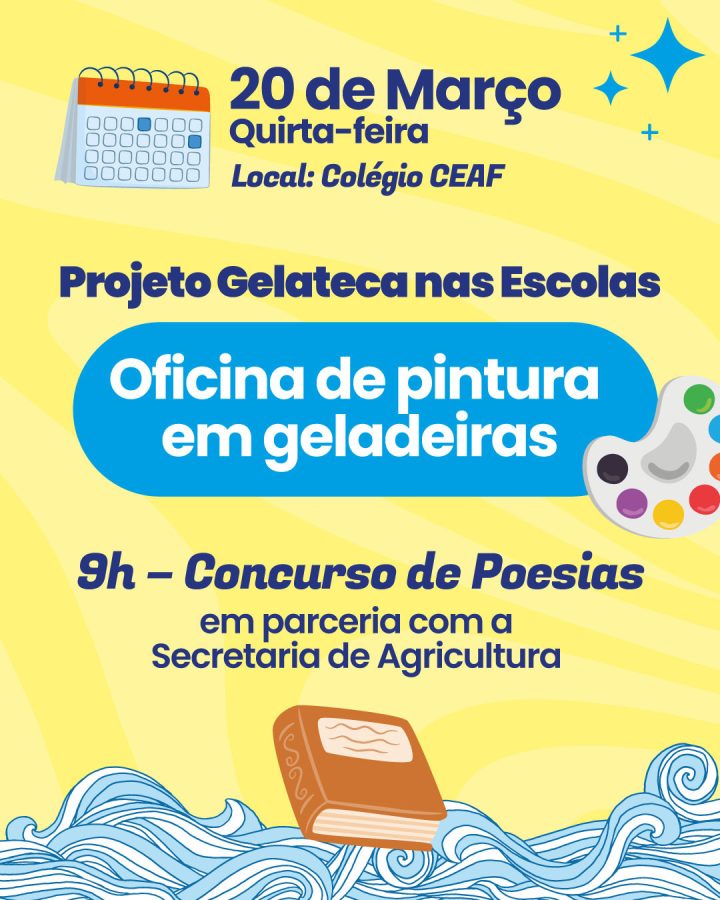 - 9h: Projeto Gelateca nas Escolas – Oficina de pintura em geladeiras, transformando-as em mini-bibliotecas