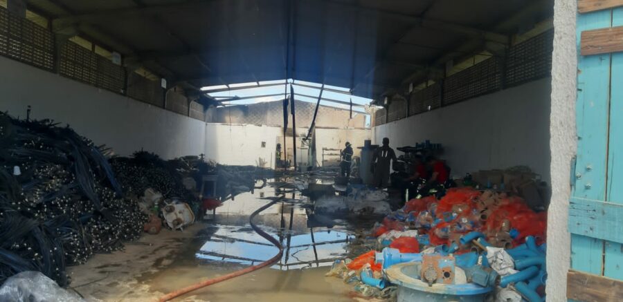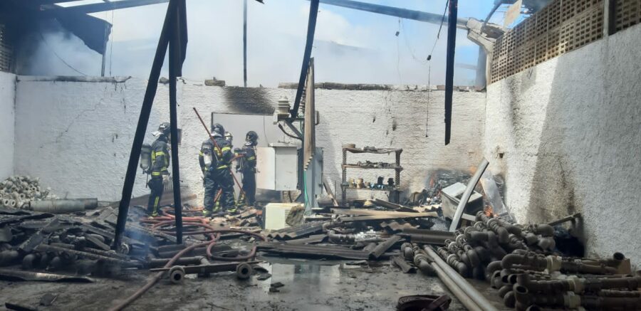 O relatório dos bombeiros detalhou os danos materiais no incêndio que afetou armários, mangueiras, colas de solda para canos de PVC, telhados, rachaduras nas paredes do almoxarifado, bem como outros materiais que não teve como identificar devido a perda total.