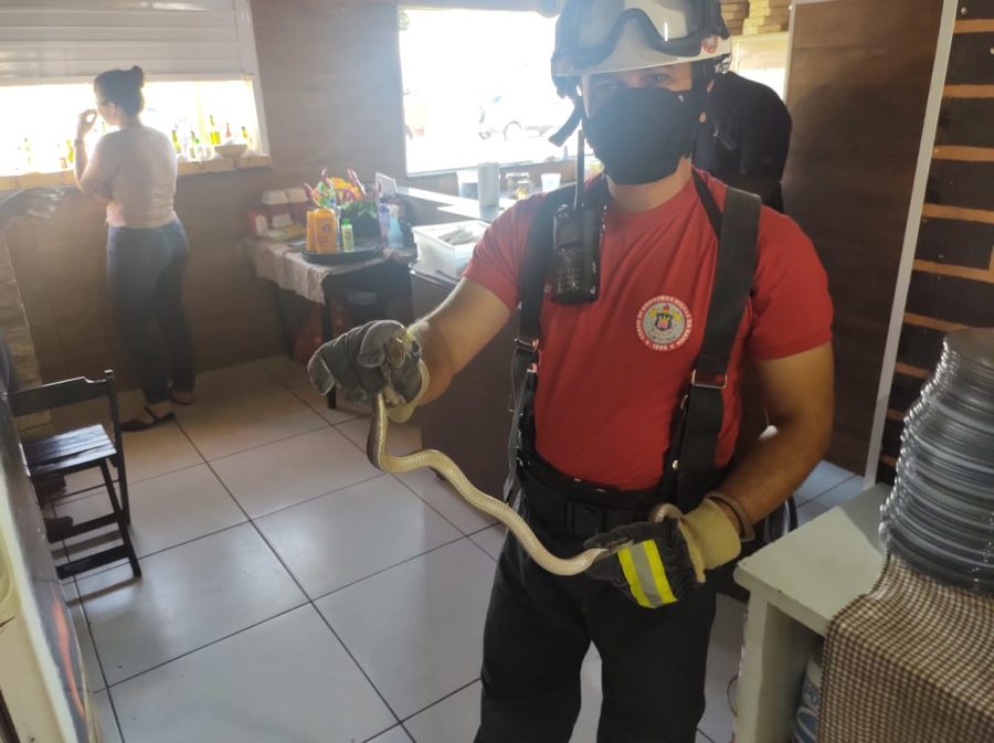 Na tarde desta quarta-feira (3), uma cobra “corre campo” foi resgatada da cozinha de um pizzaria, localizada na Avenida Apolônio Sales, Centro de Paulo Afonso.