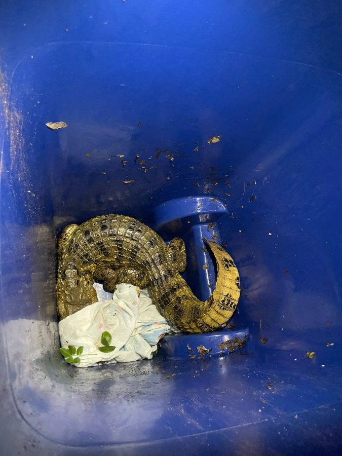 Na madrugada desta quarta-feira (05/01), uma equipe do Corpo de Bombeiros Militar de Paulo Afonso resgatou um jacaré de pequeno porte, que estava no quintal de uma residência.