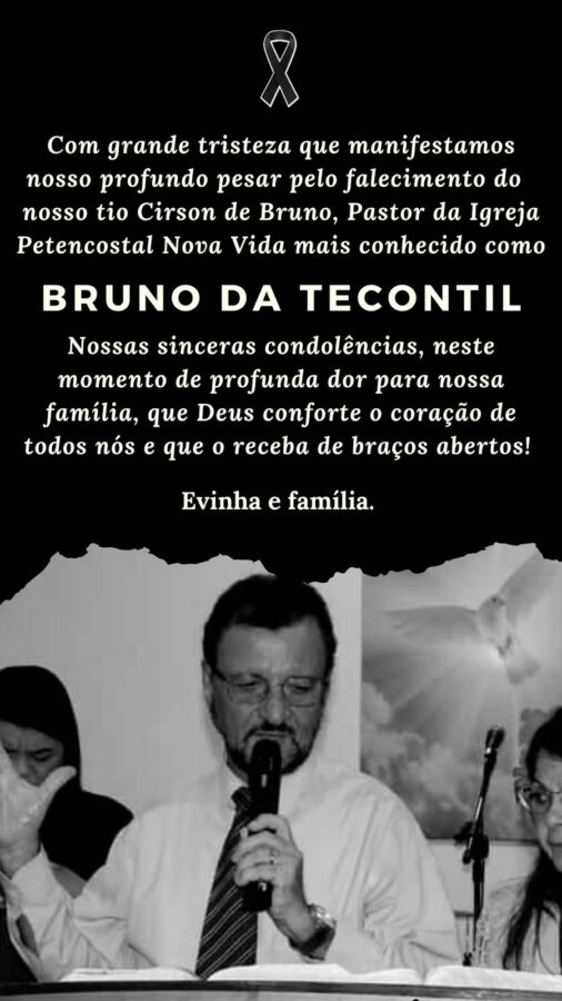 Cirson de Bruno, 66 anos, também conhecido como Bruno da Tecontil ou pastor Bruno, da Igreja Nova Vida de Paulo Afonso, Bahia, morreu na noite desta terça-feira (21), após ter um infarto em casa.