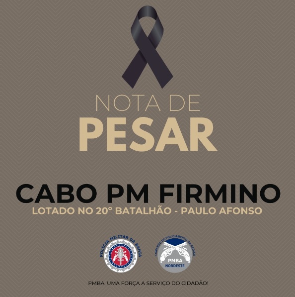 “É com profundo pesar que comunicamos o falecimento do CB PM Tarcísio Gomes Firmino, lotado no 20º BPM de Paulo Afonso. Nossos sinceros sentimentos e solidariedade aos familiares e amigos que lamentam a perda do companheiro querido.”